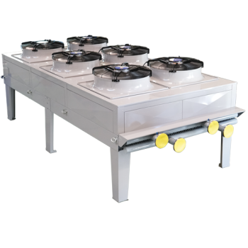 Mark dubbelrijige Dry Coolers zijn uitgerust met warmtewisselaars met koperen buis en aluminium vinnen. Ze zijn voorzien van een stalen schroefdraadaansluiting.