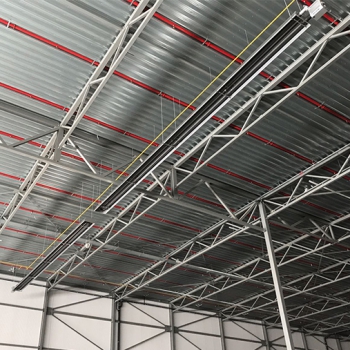 De Mark INFRA / INFRA MONO zwartebuisstraler verwarmt met langegolf infraroodstraling. Stralingsverwarming berust op het principe van warmte-overdracht van een warm lichaam naar een lichaam van lagere temperatuur, door middel van elektromagnetische golfenergie. Deze elektromagnetische golfenergie, niet gehinderd door lucht, straalt wanden, vloer en de verder in de ruimte aanwezige lichamen aan.