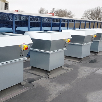 De MDV BLUE dakventilator is leverbaar in verschillende maatvoeringen en luchtopbrengsten variërend van 300 m³/h tot 15.000 m³/h. De unit is uitgerust met een radiaal ventilator, de omkasting is vervaardigd uit sendzimir plaat.